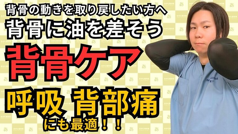 スマホやパソコン作業などで背中を丸めた姿勢が続くと、背骨の関節が動きにくくなり、周囲の筋肉も伸び縮みしにくくなります。その結果、肩が上がりやすくなったり、胸が開きにくくなったりして、首や肩のこり、疲れやすさ、呼吸の浅さにつながることがあります。今回のケアは、筋肉を鍛えるのではなく、固まった背骨の動きを穏やかに引き出す方法のため、体への負担が少なく、姿勢の整いやすさや日常動作の快適さの改善が期待できます。痛みが出る場合は無理をせず中止してください。