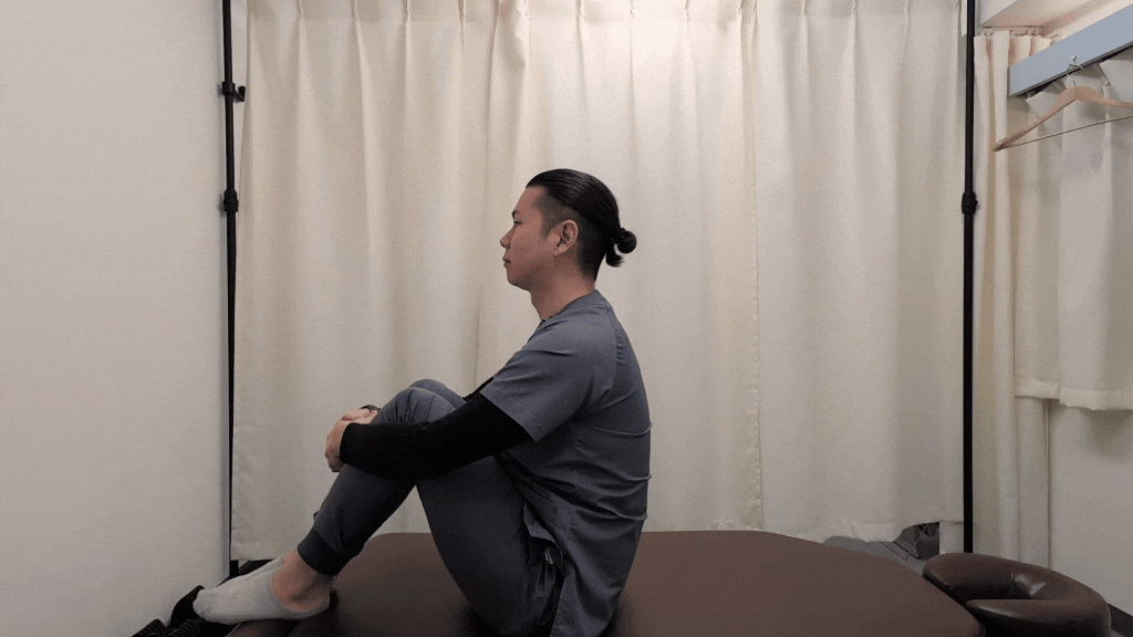 目的: 反り腰で固まった腰椎を「丸める方向」に慣らす